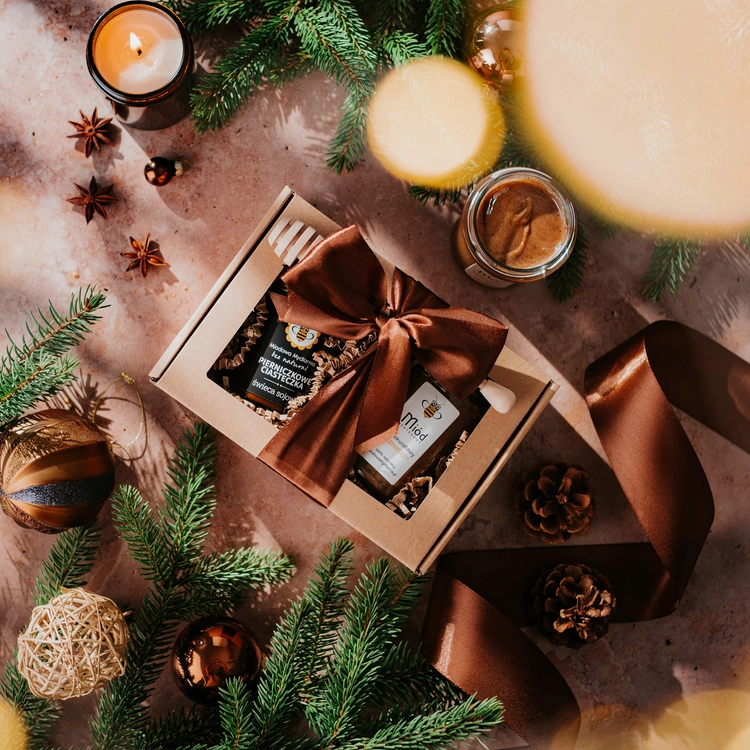 Wszystkie elementy zestawu pochodzą od polskich producentów, ręcznie kompletowane z dbałością o detale i estetykę. Świece z naturalnego wosku sojowego z bawełnianym knotem palą się czysto i długo; miody z lokalnej pasieki gwarantują autentyczny smak i wartości odżywcze.