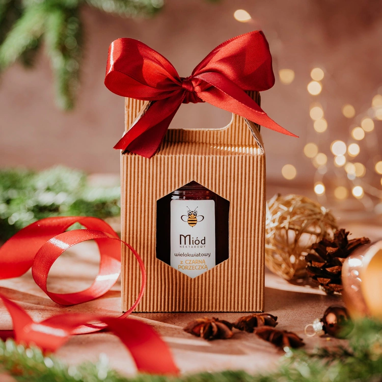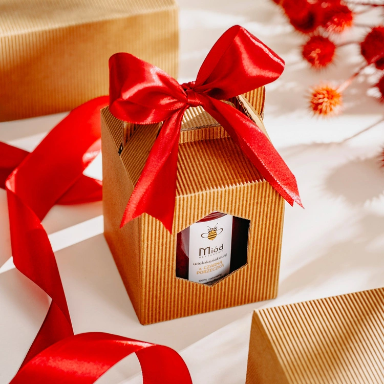 Wyjątkowy prezent dla każdego miłośnika naturalnych smaków - eleganckie pudełko z wybranym przez Ciebie miodem. Estetyczna bordowa kokardka nadaje całości szlachetnego charakteru, podkreślając wyjątkowość upominku.
