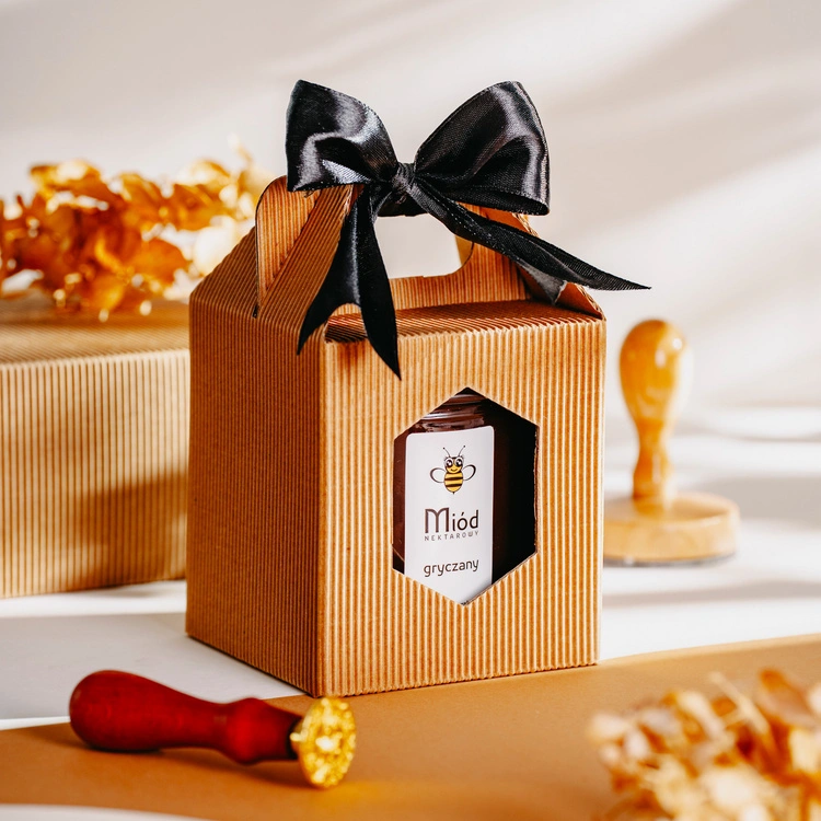 Wyjątkowy prezent dla każdego miłośnika naturalnych smaków - eleganckie pudełko z wybranym przez Ciebie miodem. Estetyczna czarna kokardka nadaje całości szlachetnego charakteru, podkreślając wyjątkowość upominku.