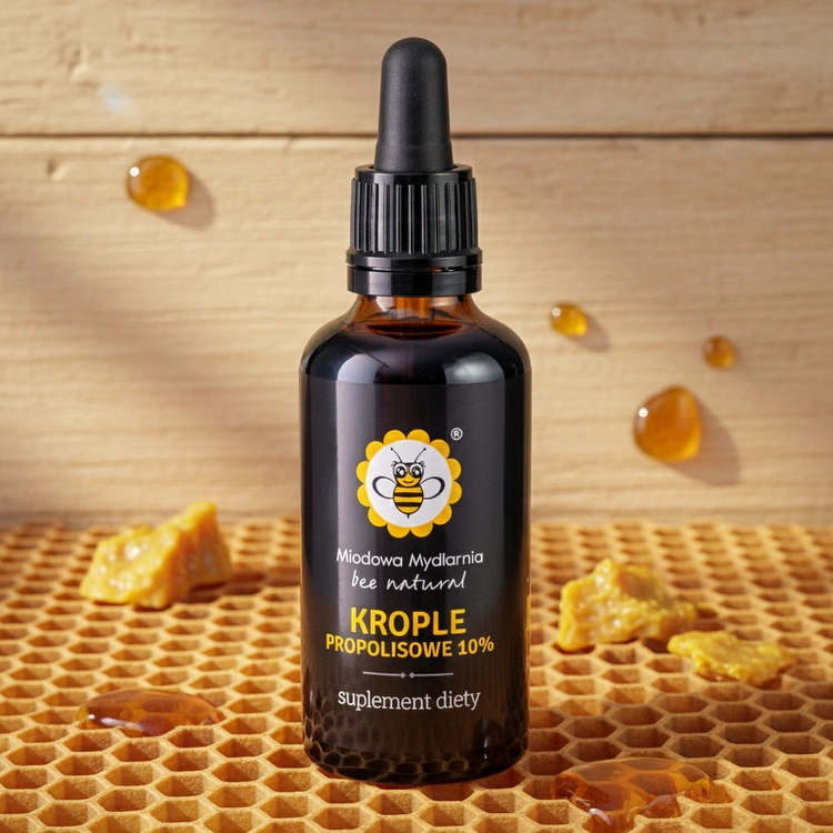 - Naturalne krople propolisowe z 10% ekstraktem kitu pszczelego - skuteczne wsparcie odporności w wygodnej buteleczce z kroplomierzem. Idealny sposób na wzmocnienie organizmu i ochronę przed infekcjami przez cały rok.