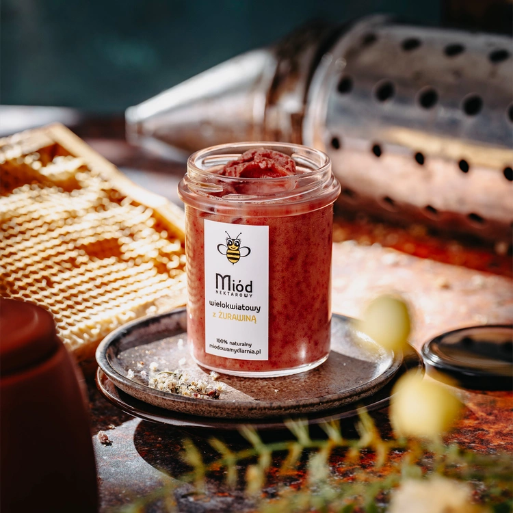 - Wyjątkowy miód żurawinowy z wielokwiatowego miodu, wzbogacony naturalnym aromatem żurawiny, dodaje smaku i wartości odżywczych wszystkim potrawom, od śniadań po desery.