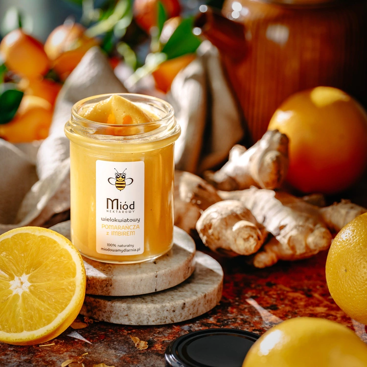 Delikatnie kremowany miód wielokwiatowy z pomarańczą i imbirem