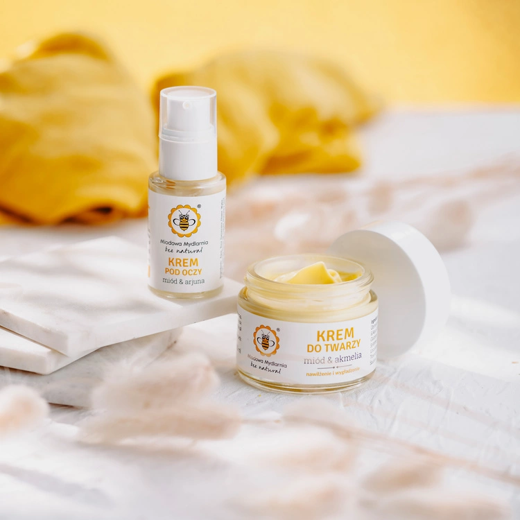 Nawilżenie i rozjaśnienie. Bogactwo składników aktywnych, w tym niezwykłego w działaniu ekstraktu z kory drzewa Arjuna, witamin C i E, trokserutyny, ekstraktów z ogórka, prawoślazu i nagietka, i oczywiście miodu. Lekka, bezzapachowa formuła.