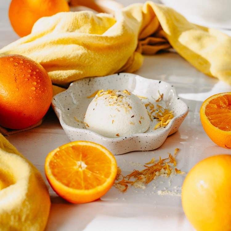 - Musująca, aromatyczna półkula do kąpieli, nawilżająca z odżywczymi i kojącymi: mlekiem, mączką ziemniaczaną, masełkiem shea, olejem kokosowym, olejkiem migdałowym. Pachnie soczyście, świeżo, przyjemnie - dzięki eterycznemu olejkowi ze słodkich pomarańczy.