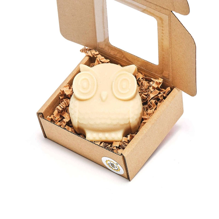 - Sowa to mydło wykonane wg receptury istniejącego już mydła w naszej ofercie: Delikatne z Kozim Mlekiem – nadaliśmy mu kształt przemiłej sowy.