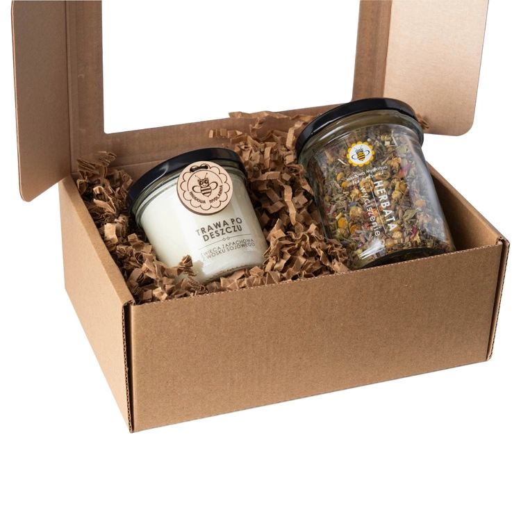 Zestaw herbata Wyciszenie + świeca Trawa po Deszczu - Eko Box Prezentowy