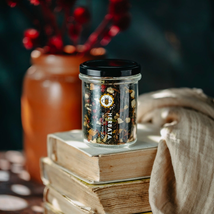 Herbata Zimowy Wieczór została zapakowana w elegancki szklany słoik, który nie tylko chroni jej świeżość, ale także idealnie nadaje się na prezent. Aby wydobyć pełnię smaku, zaleca się parzenie 1 łyżeczki herbaty w 200 ml wrzącej wody przez 3-5 minut pod przykryciem.