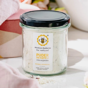 - Puder do kąpieli RÓŻA ANGIELSKA – luksusowy dodatek do kąpieli, który pielęgnuje skórę i otula ciało kwiatowym aromatem.